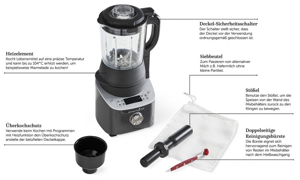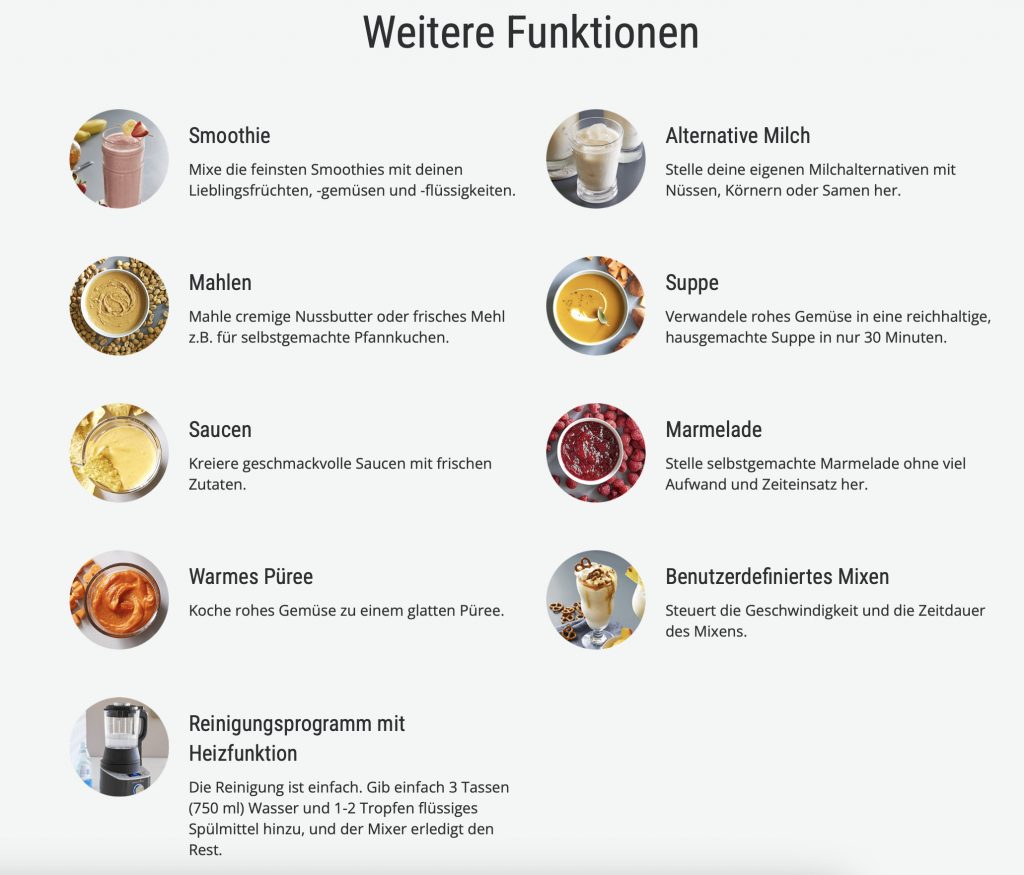 Dank dem leistungsstarken Motors und den innovativen Programmen kannst du sogar Zutaten erhitzen