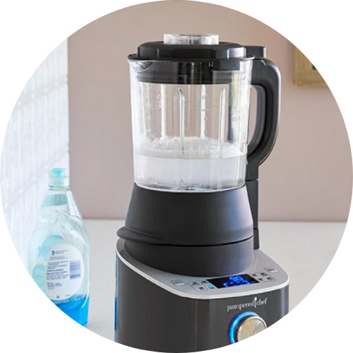 Kein Schrubben nötig! Dank der praktischen Selbstreinigungsfunktion reinigt sich der Deluxe Blender fast von selbst. Einfach Wasser und einen Spritzer Spülmittel einfüllen,