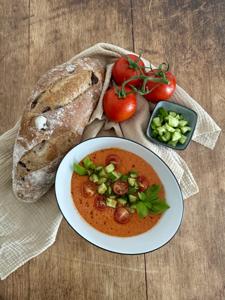 Kalte Tomatensuppe mit viel frischem Gemüse