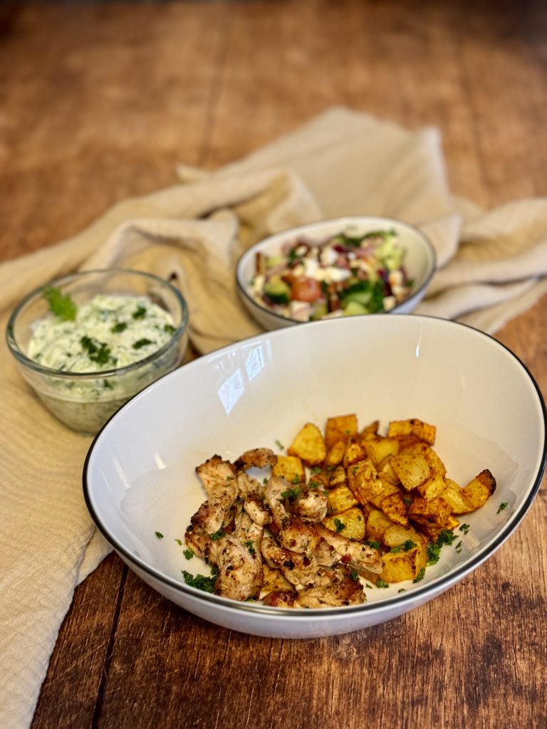 Lachs auf Porree mit käsigen Bratkartoffeln